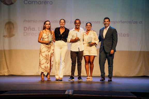 La ceremonia dio comienzo con una entrega cargada de emociones y orgullo: el homenaje póstumo a Alberto Pernalete, destacado director de Operaciones de Cordial Hotels & Resorts y ex director del Hotel Cordial Mogán Playa, quien falleció recientemente tras una larga enfermedad. Durante la ceremonia, su esposa Carina Pernalete-Fett y su hijo Leandro Noel Pernalete recibieron el premio en su nombre. Leandro, emocionado, destacó que el reconocimiento provenía de sus propios compañeros como prueba del cariño y respeto que su padre cosechó a lo largo de su carrera.