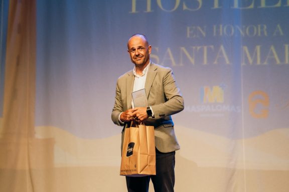 Recoge el premio Don Jorge Santana (director del Hotel Cordial Mogán Playa).